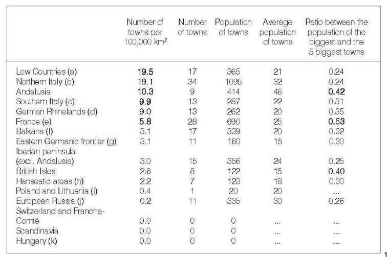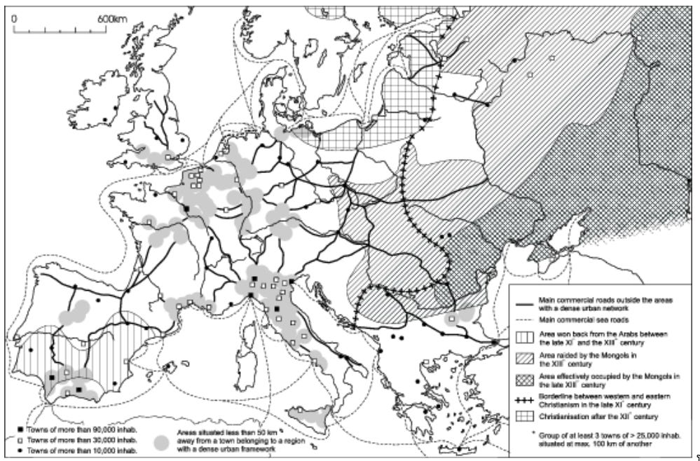 Figure 2. “Urban development of Europe in 1300 (towns with over 10,000 inhabitants).”15
